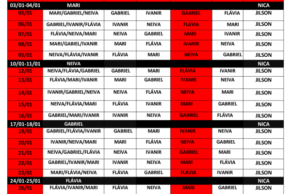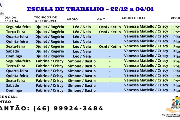 Escala de trabalho para Natal e Fim de ano do CRAS.