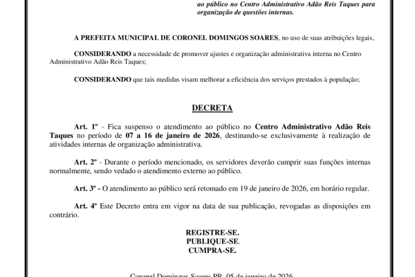 Segunda a Sexta das 8h às 12h e das 13h às 17h | Email: gabinete@pmcds.pr.gov.br