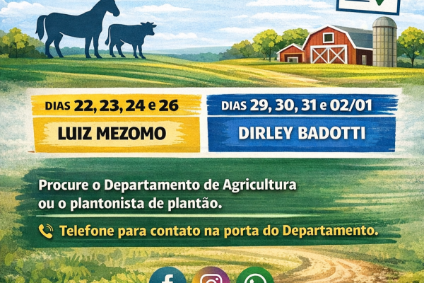 Escala para retirada de GTA junto ao Departamento de Municipal de Agricultura.