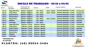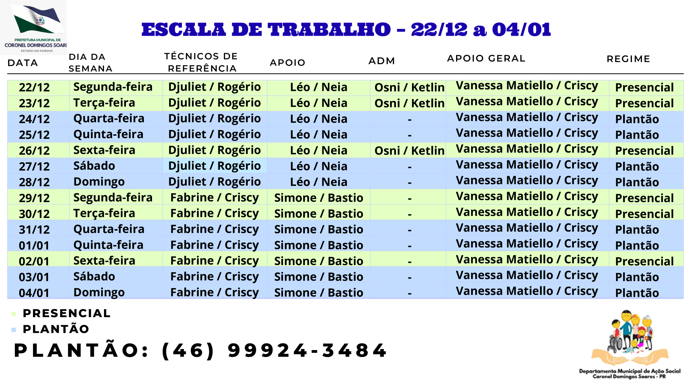 Escala de trabalho para Natal e Fim de ano do CRAS.
